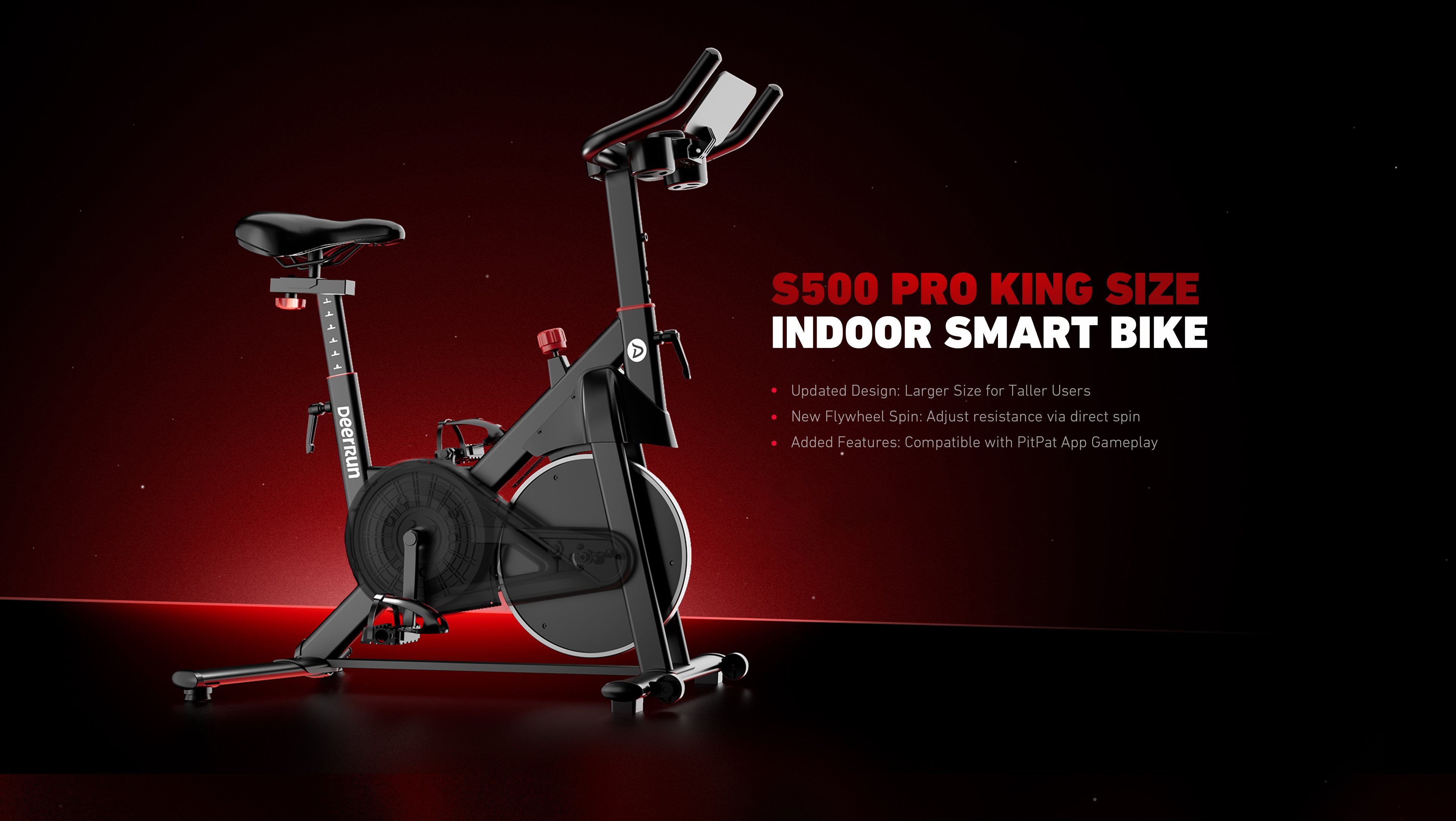 Meet the S500 Pro Indoor Exercise Bike—bigger for taller riders, plus a sleek, stable fish-tail design! It packs 32 spin-adjustable magnetic resistance levels, 2-way handlebars, an adjustable seat, and an LED screen showing real-time time/speed/calories. Sync PitPat for live challenges, friend rides & data tracking; target muscles via versatile postures. With 300LBS capacity, easy mobility and a cup holder—it turns indoor workouts into fun!